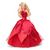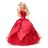 - Barbie célèbre la nativité dans un éclat rouge vif. Cheveux bouclés et lèvres vermeilles, elle porte une robe évasée avec volants de tulle et de satin.