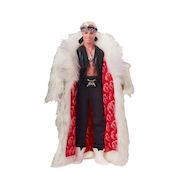 Découvrez la poupée Ken de la marque Barbie, inspirée du film 'Barbie'. Cette poupée articulée est vêtue d'un élégant manteau en fausse fourrure avec une doublure rouge, un gilet noir à franges, une bandana, des gants sans doigts, et une ceinture ornée de la mention 'KEN'. Elle est fabriquée en plastique et tissus synthétiques, idéale pour les collectionneurs et les enfants de 6 ans et plus. Ken est également équipé d'un socle pour tenir debout, parfait pour stimuler la créativité et imaginer de nouvelles aventures.