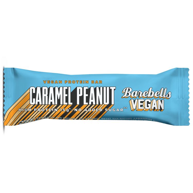 Barre protéinée vegan avec enrobage au chocolat (26%), morceaux de cacahuètes et caramel. Contient des édulcorants et des sucres naturels.