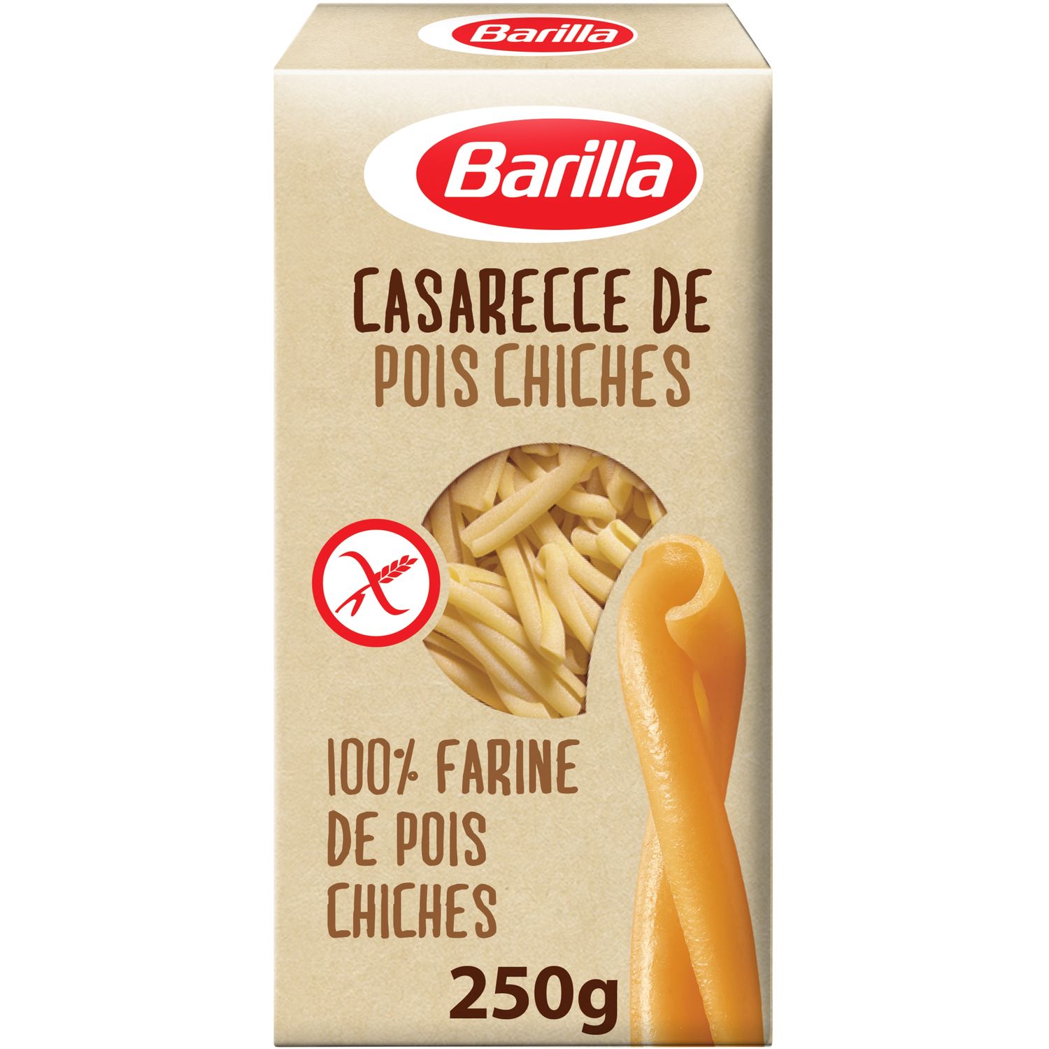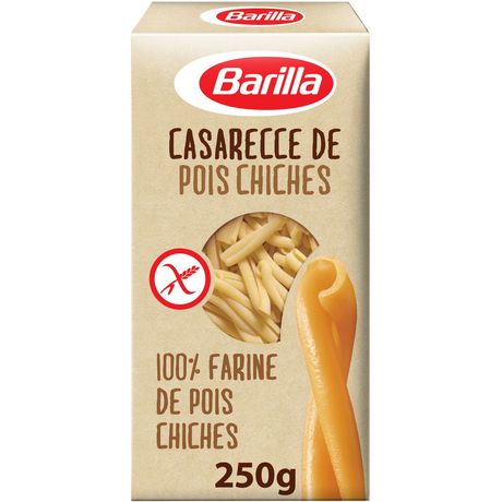 Découvrez de nouvelles saveurs. Tous les bienfaits des légumineuses, avec le plaisir al dente et la qualité Barilla. Les Casarecce 100% farine de pois chiche conservent le goût délicieux des pois chiches ainsi que leurs bienfaits : riches en protéines, en fibres et sans gluten. SPÉCIALITÉ ALIMENTAIRE À BASE DE LÉGUMINEUSE