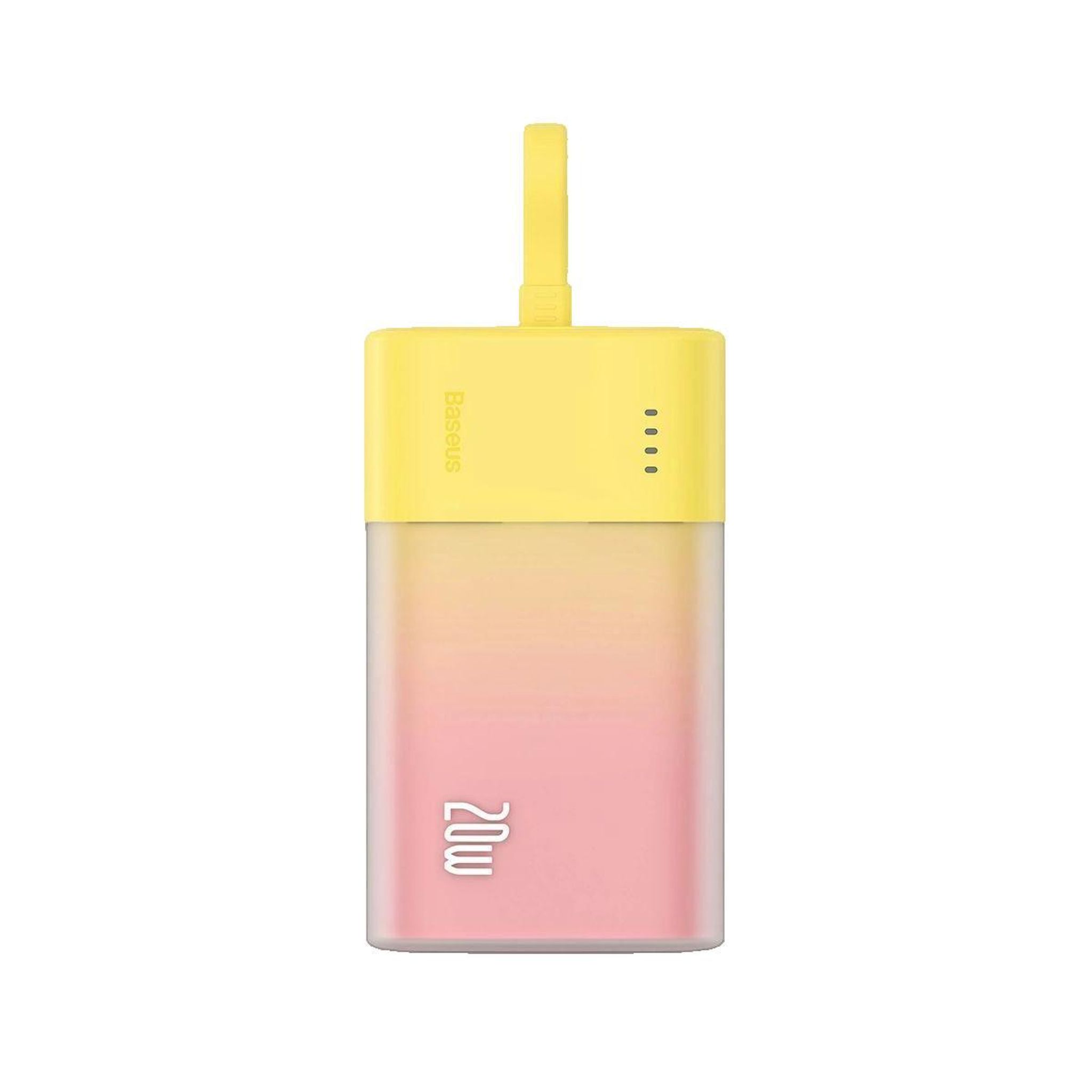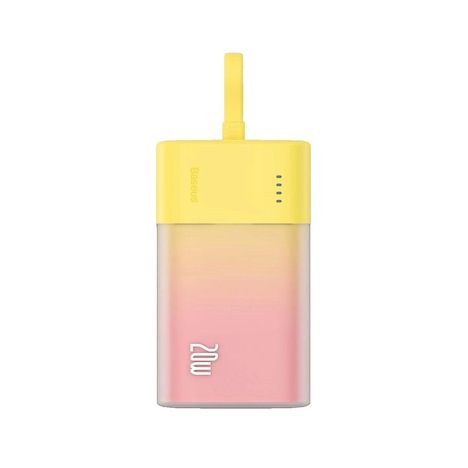 Découvrez le Powerbank Baseus Popsicle, un chargeur portable compact et élégant, idéal pour recharger vos appareils mobiles en déplacement. Ce modèle jaune de 5200mAh offre une puissance de sortie rapide de 20W, assurant un rechargement efficace. Il est équipé d'un câble Lightning intégré et d'un câ