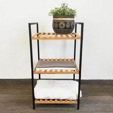 Gardez vos objets essentiels bien ranges avec ce support de rangement en bambou a 3 etageres de la marque Bathroom Solutions. Ce support fonctionnel pour salle de bain est dote d'un cadre en acier leger et robuste et de 3 etageres. Le materiau en bambou ajoute egalement un aspect naturel et accueill