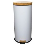Poubelle bois de cuisine à pédale 30L Naturel FOREST Blanc en acier Inox couvercle en bambou avec seau