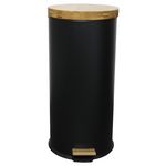 Poubelle bois de cuisine à pédale 30L Naturel FOREST Noir en acier Inox couvercle en bambou avec seau