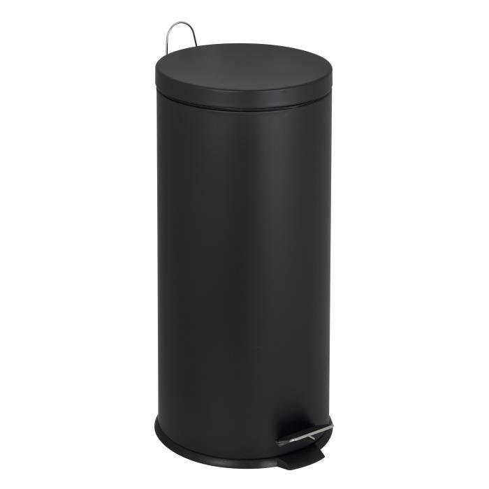 Poubelle de cuisine à pédale basique chic cylindrique 30L URBAN Noir mat en acier inox avec seau