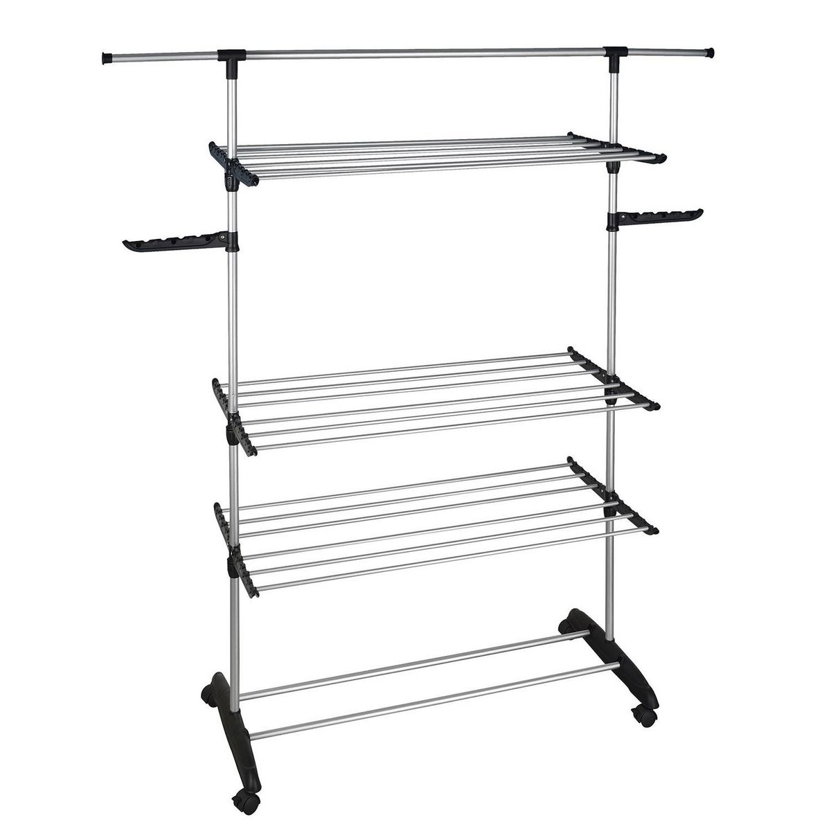 Kitchen Move BAT-IH1903 Séchoir à linge étendoir multifonction 25M ULTIMA 3 niveaux Noir et inoxÉquipé de 2 portes-cintres, d'une barre d'extension pour étendre les draps et autres linges volumineux, d?une double barre support range chaussures et muni de 4 roulettes pour un déplacement aisé et une m