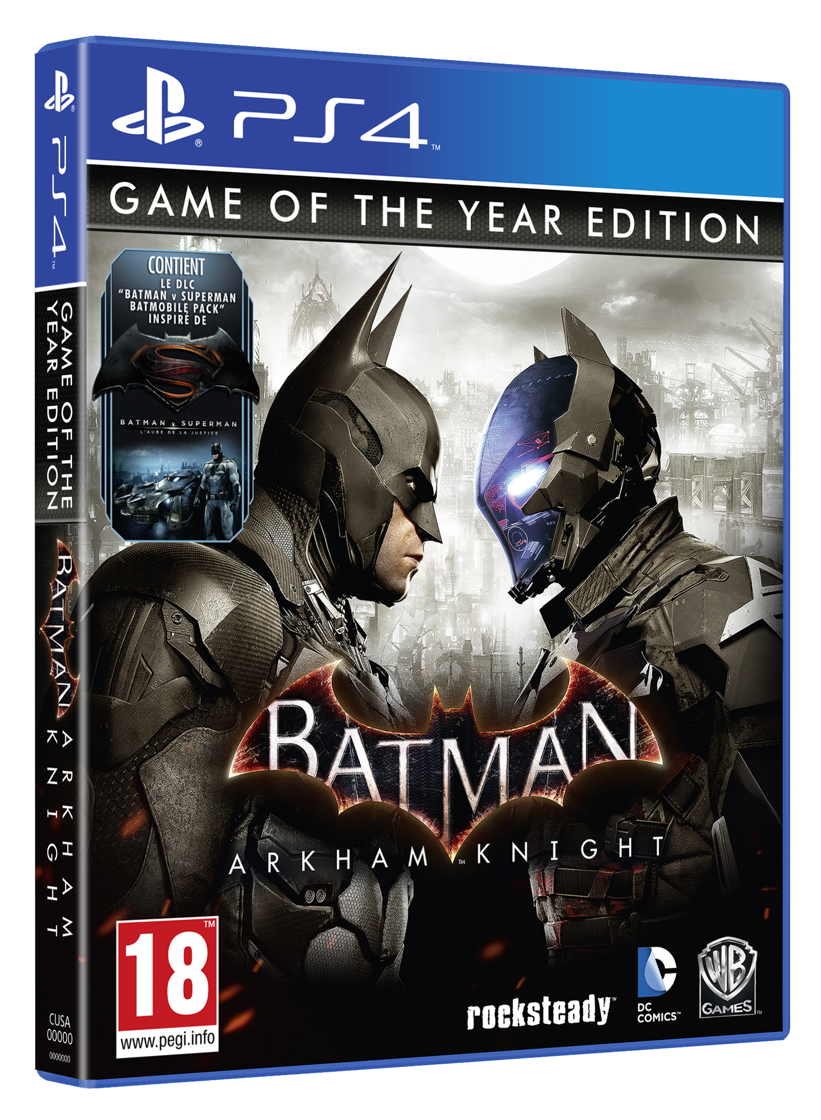 Batman™: Arkham Knight marque le dénouement épique de la trilogie primée Arkham, créée par les studios Rocksteady. Développé exclusivement pour les consoles nouvelle génération, Batman: Arkham Knight introduit une version unique de la Batmobile, créée par Rocksteady. Ce véhicule légendaire, associé au gameplay plébiscité de la série Batman Arkham, offre aux joueurs l'expérience de jeu Batman la plus complète. Roulez à toute allure dans les rues de Gotham City et élancez-vous au-dessus des toits. Dans ce final explosif, Batman affronte la menace ultime dans la ville qu’il s’est juré de protéger. L'Épouvantail est de retour pour réunir les super-vilains de Gotham et détruire Batman une bonne fois pour toutes.