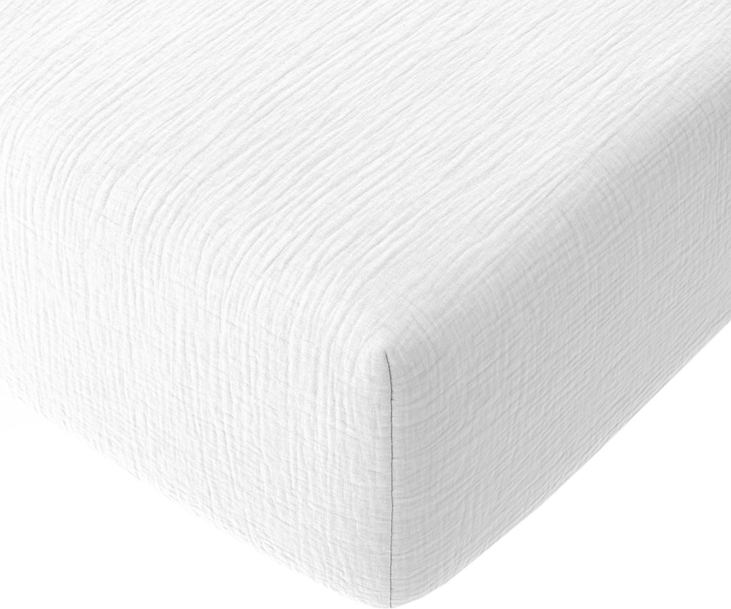 DRAP HOUSSE 100% GAZE DE COTON LAVÉ UNI BLANC