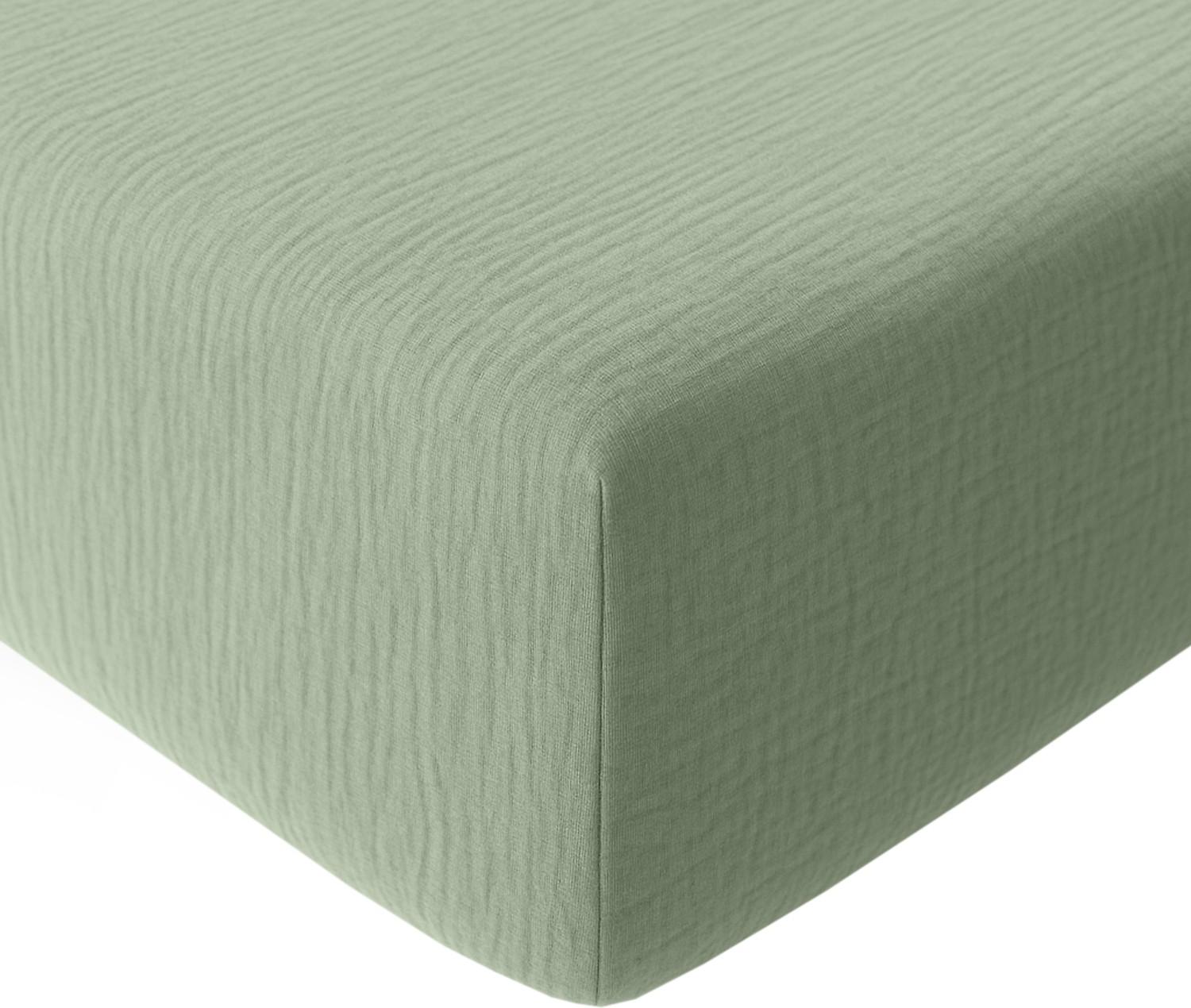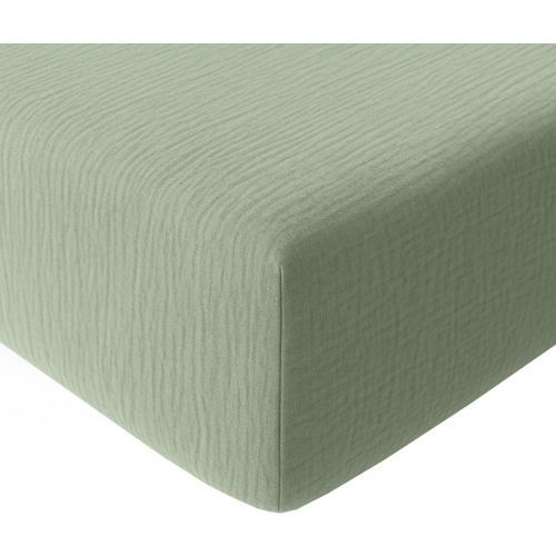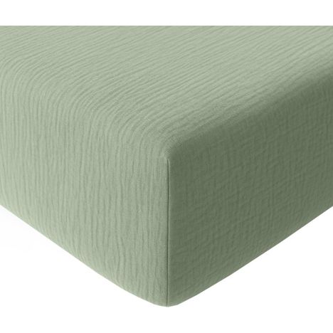 DRAP HOUSSE 100% GAZE DE COTON LAVÉ UNI VERT GIVREEBâton-Rouge est très attentif à la qualité de ses produits. Les impressions, les teintures et les finitions sont faites à la main. Cela occasionne des variations de couleur ou de motif qui rendent chaque pièce unique.La gaze de coton lavé est une ma