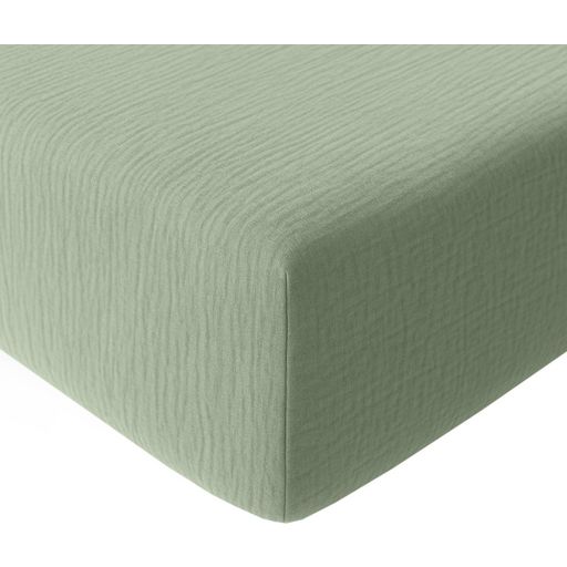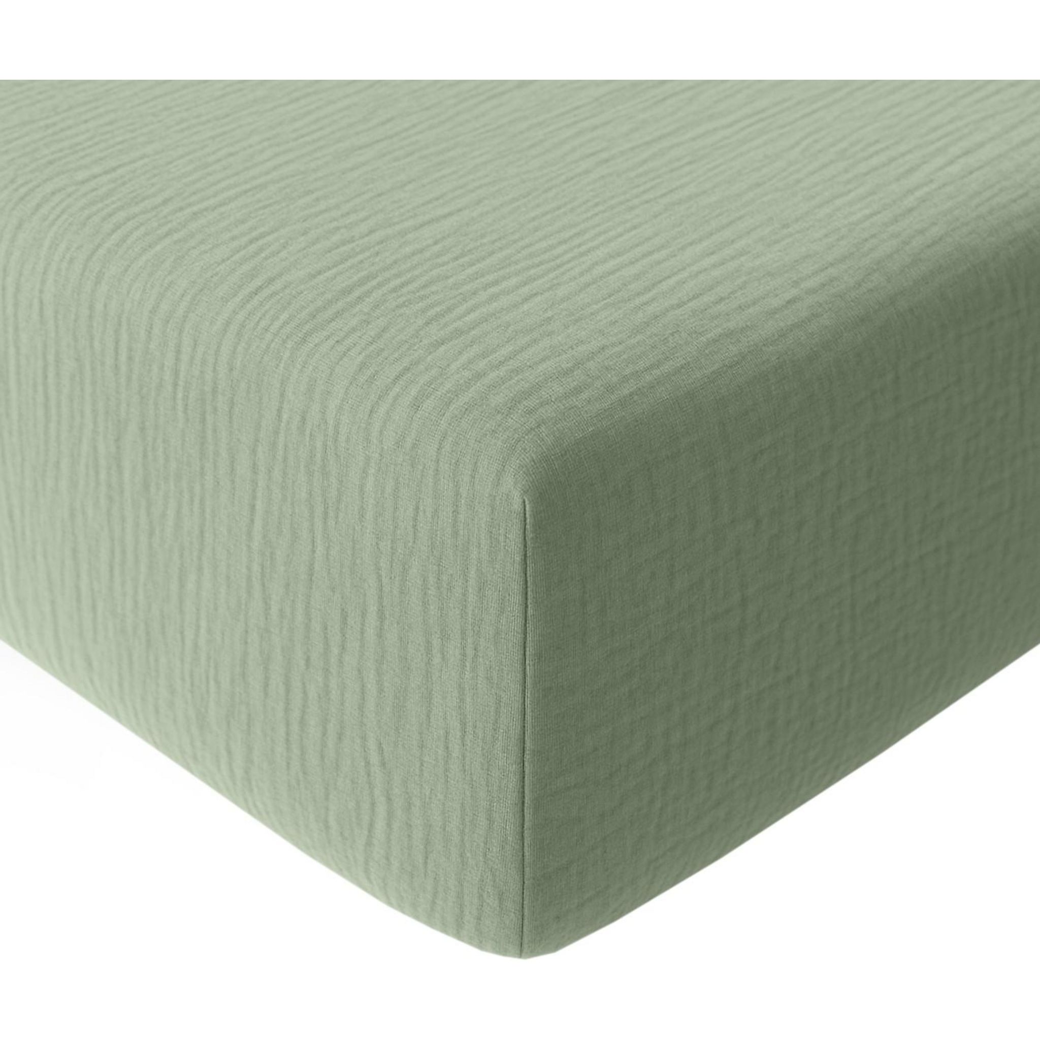 DRAP HOUSSE 100% GAZE DE COTON LAVÉ UNI VERT GIVREE