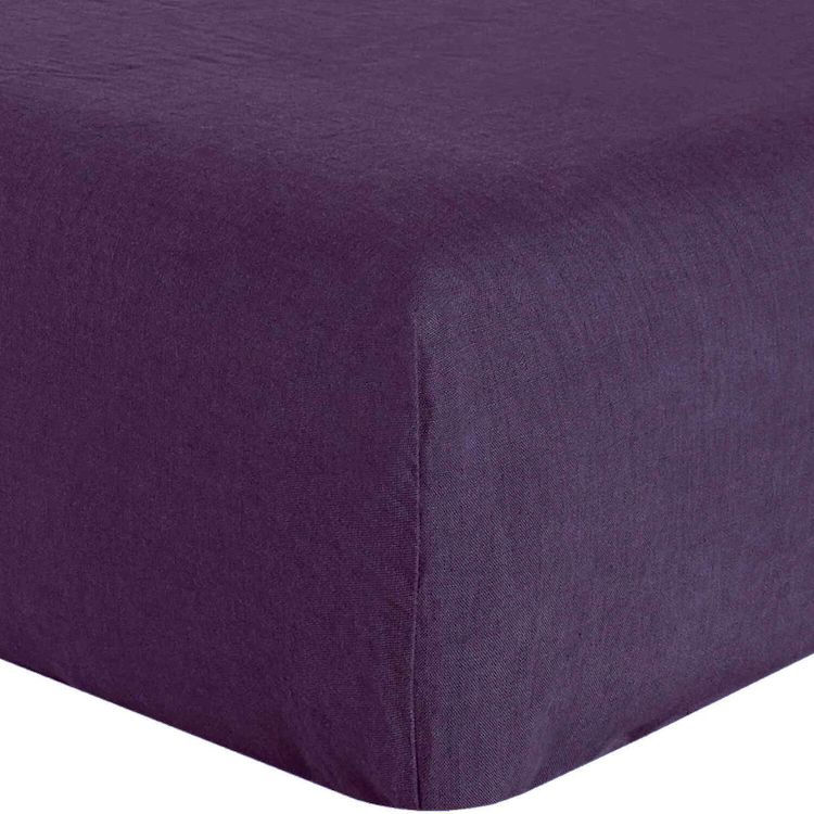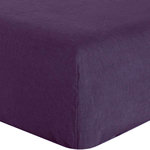 DRAP HOUSSE UNI BÂTON ROUGE EN 100% LIN LAVÉ PRUNE