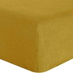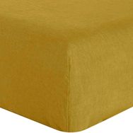 DRAP HOUSSE UNI BÂTON ROUGE EN 100% LIN LAVÉ JAUNE CURRY