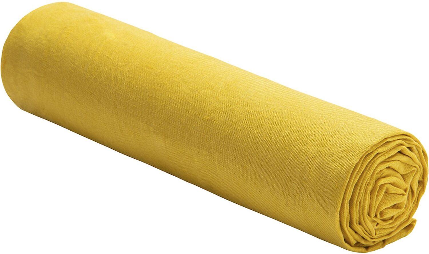 DRAP HOUSSE UNI BÂTON ROUGE EN 100% LIN LAVÉ JAUNE LUMIERE