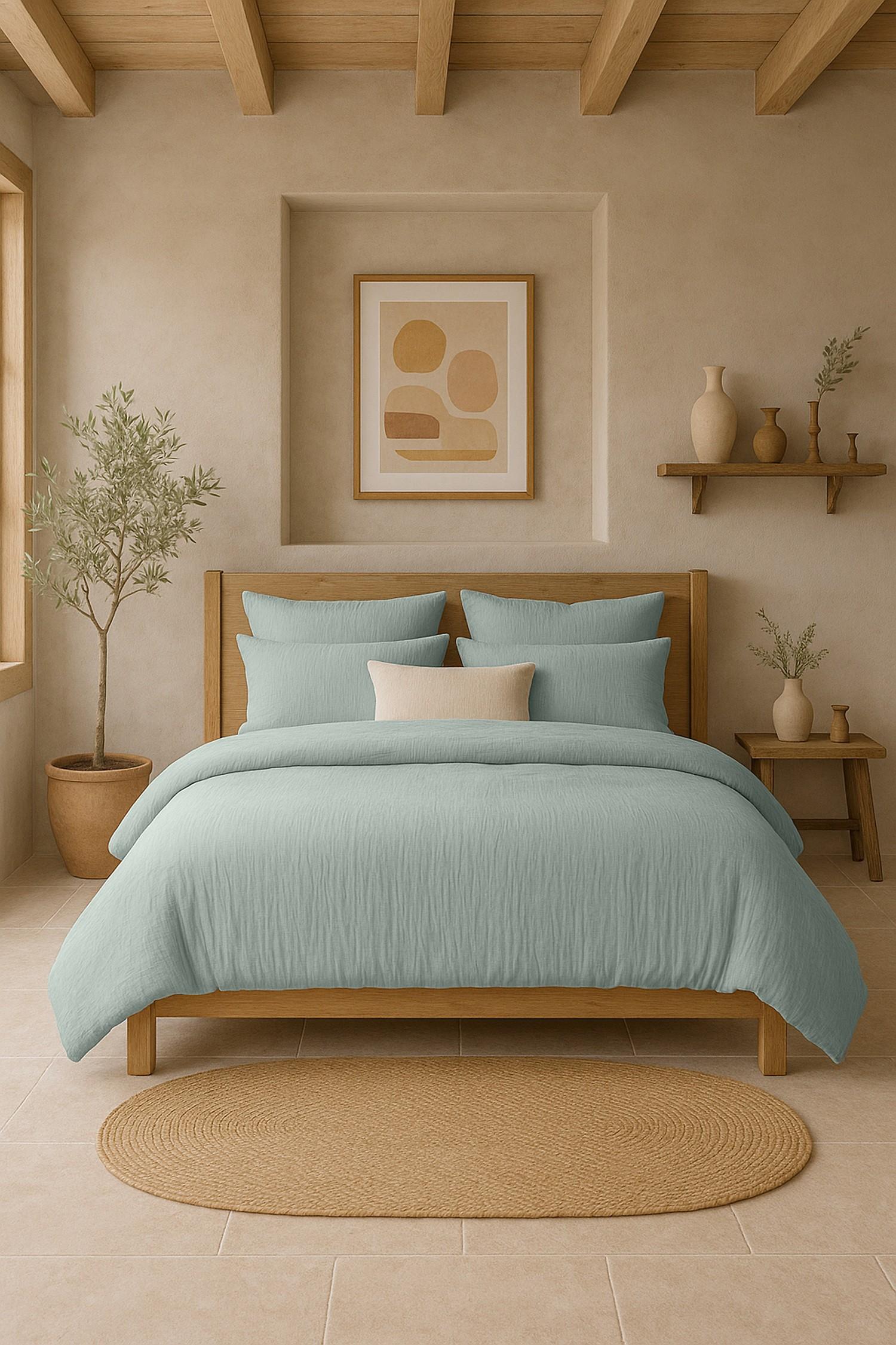 HOUSSE DE COUETTE 100% GAZE DE COTON LAVÉ UNI BLEU GIVREE