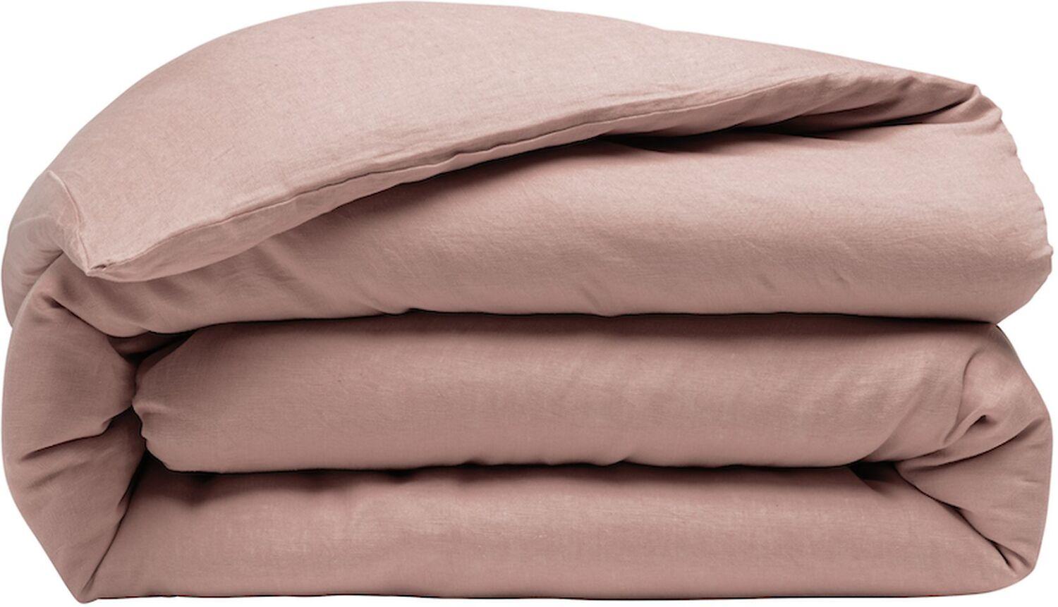 HOUSSE DE COUETTE UNI EN 100% LIN LAVE DE FILS ROSE NUDE