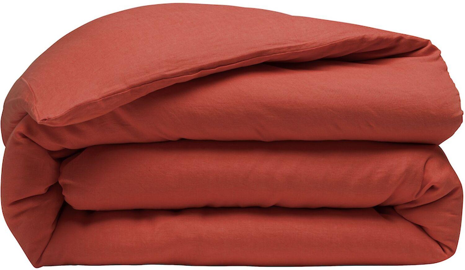 HOUSSE DE COUETTE UNI EN 100% LIN LAVE DE FILS PAPRIKA