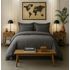 Housse de couette 100% percale de coton lavé 80fils/cm² - finition bouteille 40cm - gris magnet