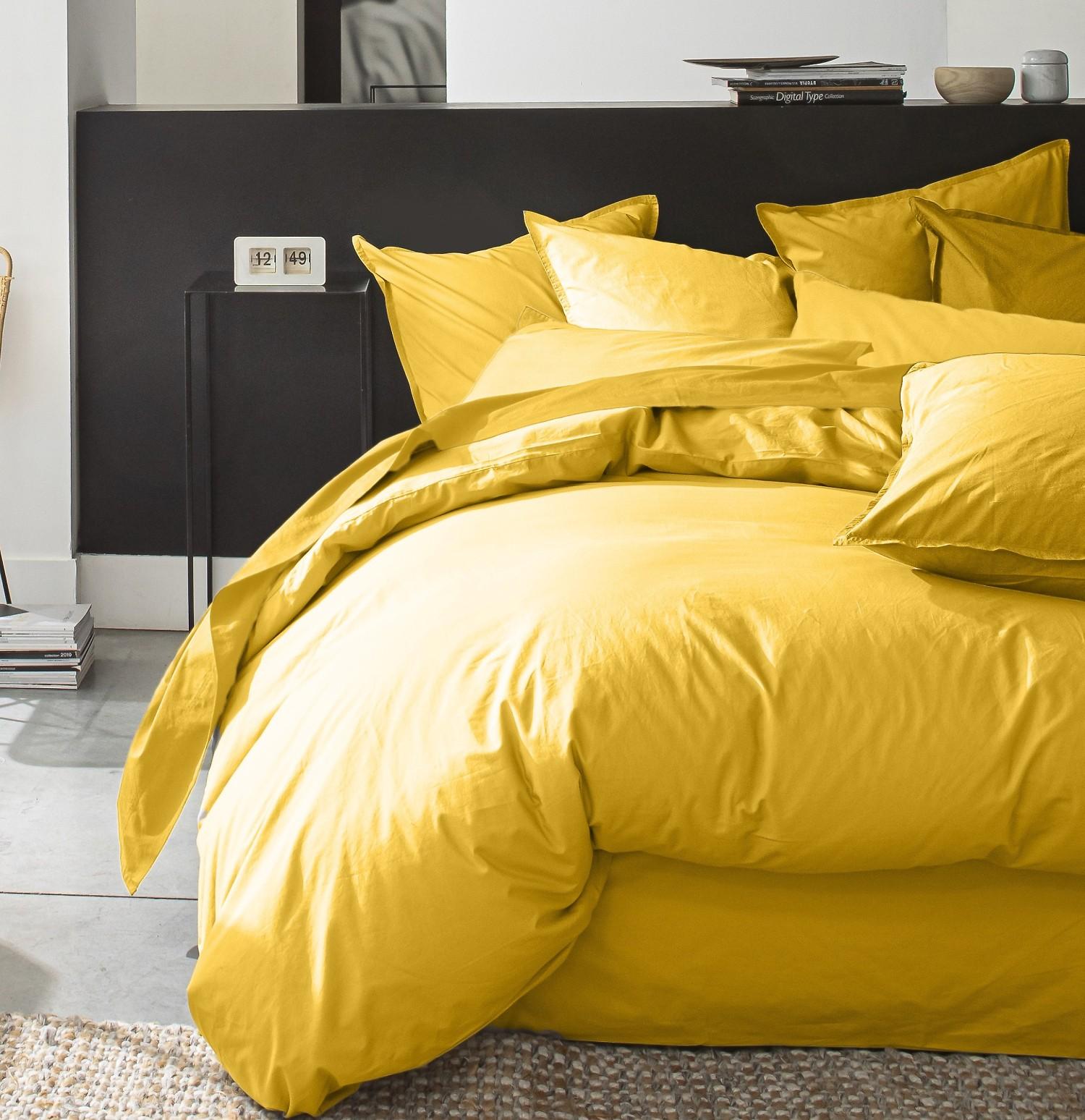 HOUSSE DE COUETTE UNI EN 100% PERCALE DE COTON 80 FILS JAUNE