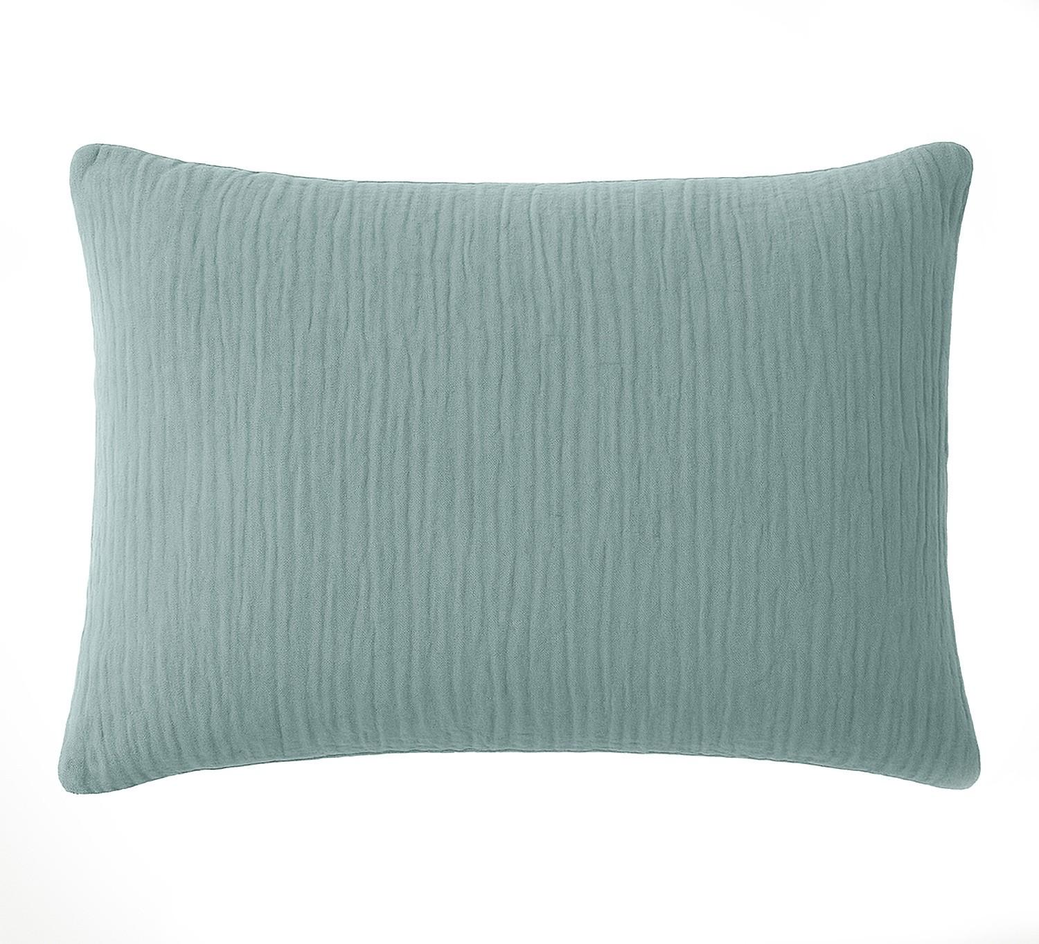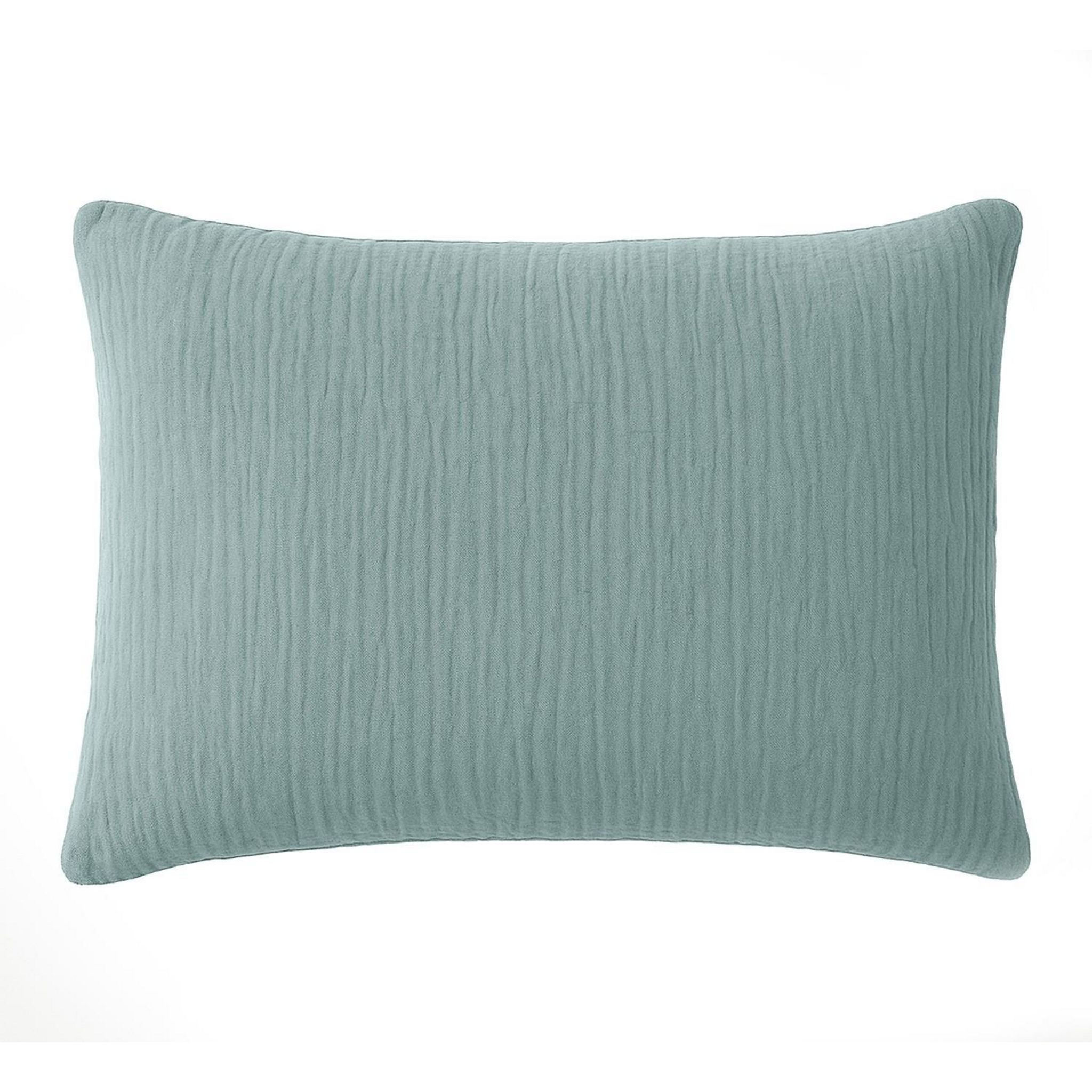 TAIE D'OREILLER 100% GAZE DE COTON LAVÉ UNI BLEU GIVREE