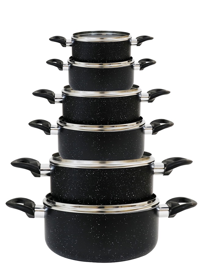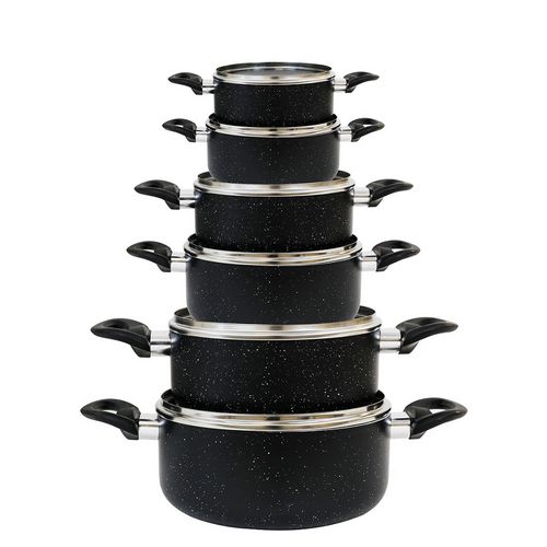 Batterie de cuisine induction 12 pièces aluminium noir
