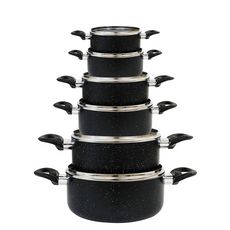 Cuisinez au quotidien avec cette batterie de cuisine noire de 12 pièces en aluminium forgé. Cette dernière est compatible avec tous les feux dont l'induction. Elle est composée de 6 faitouts de 18, 20, 22, 24, 26 et 28 cm ainsi que 6 couvercles en verres. Bénéficiez d'un confort de cuisson grâce au revêtement anti adhésif. Compatible avec le lave vaisselle.