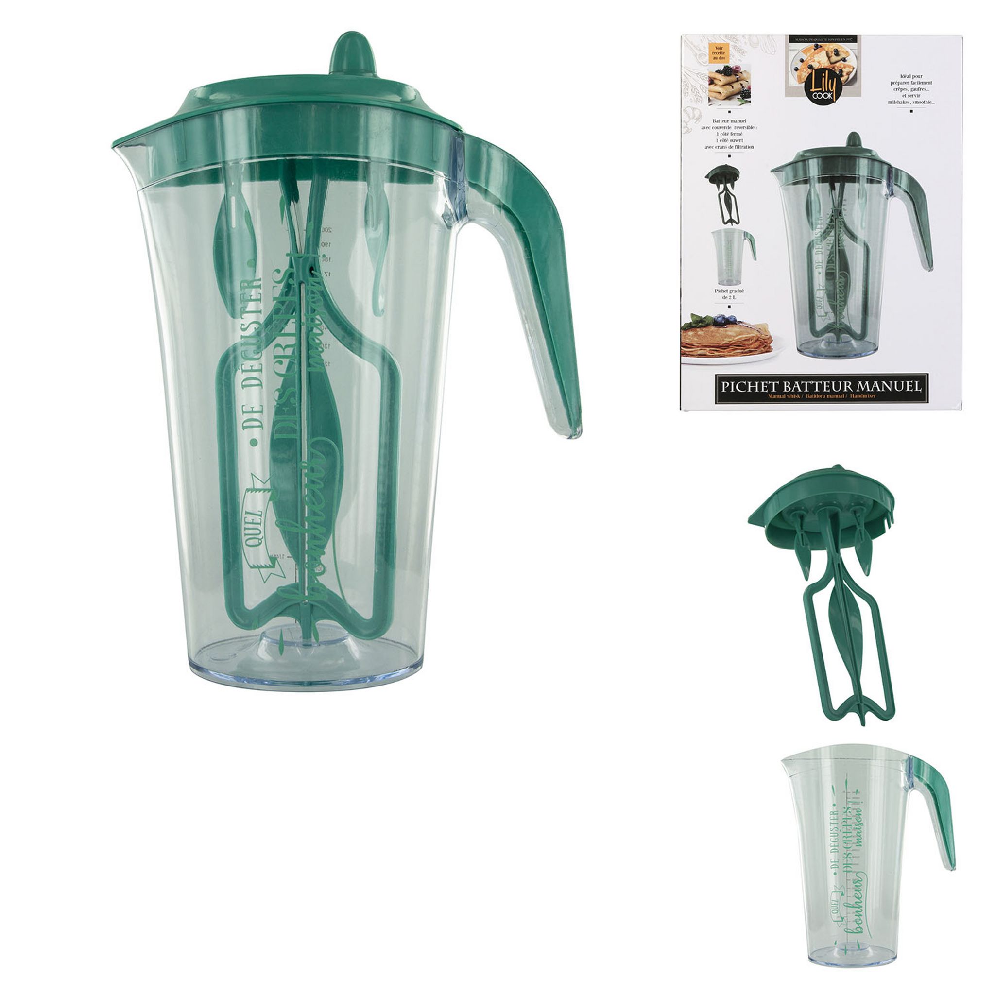 Batteur manuel 2 litres vert en plastique avec poignée et couvercle. Ultra pratique et facile à utiliser pour toutes vos préparations maison !