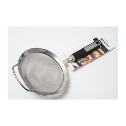 Le tamis fin (0,2 à 0,3 mm) permet une filtration ultra-précise des liquides, tandis que sa forme évasée facilite la manipulation. Son manche riveté assure une prise en main sécurisée, même lors des préparations intensives.