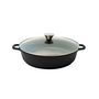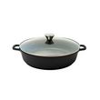 Baumalu 384941 Cocotte mijoteuse basse 384941 de Baumalu. L'alliée incontournable pour les grandes tablées, les plats familiaux ou les préparations gourmandes à faire mijoter longuement ! Idéale pour préparer de délicieux plats mijotés en grande quantité, tout en conservant les saveurs et la tendreté des aliments ! Son design noir sobre et élégant s'intègre parfaitement dans toutes les cuisines. En fonte d'aluminium, épaisseur 1.8 mm, alliant robustesse et légèreté pour une manipulation facilitée au quotidien. Revêtement intérieur antiadhésif en céramique assurant une cuisson douce et maîtrisée avec peu de matières grasses, tout en évitant que les aliments accrochent. Équipée d'un couvercle en verre avec bouton en inox et trou vapeur, cette mijoteuse est parfaite pour les cuissons à l'étouffée, lentes et maîtrisées - Compatible four jusqu'à 240°C sans le couvercle et jusqu'à 180°C avec le couvercle : parfait pour les cuissons combinées de vos plats ! Commencez la cuisson en saisissant les aliments puis terminez en mijotant lentement au four.