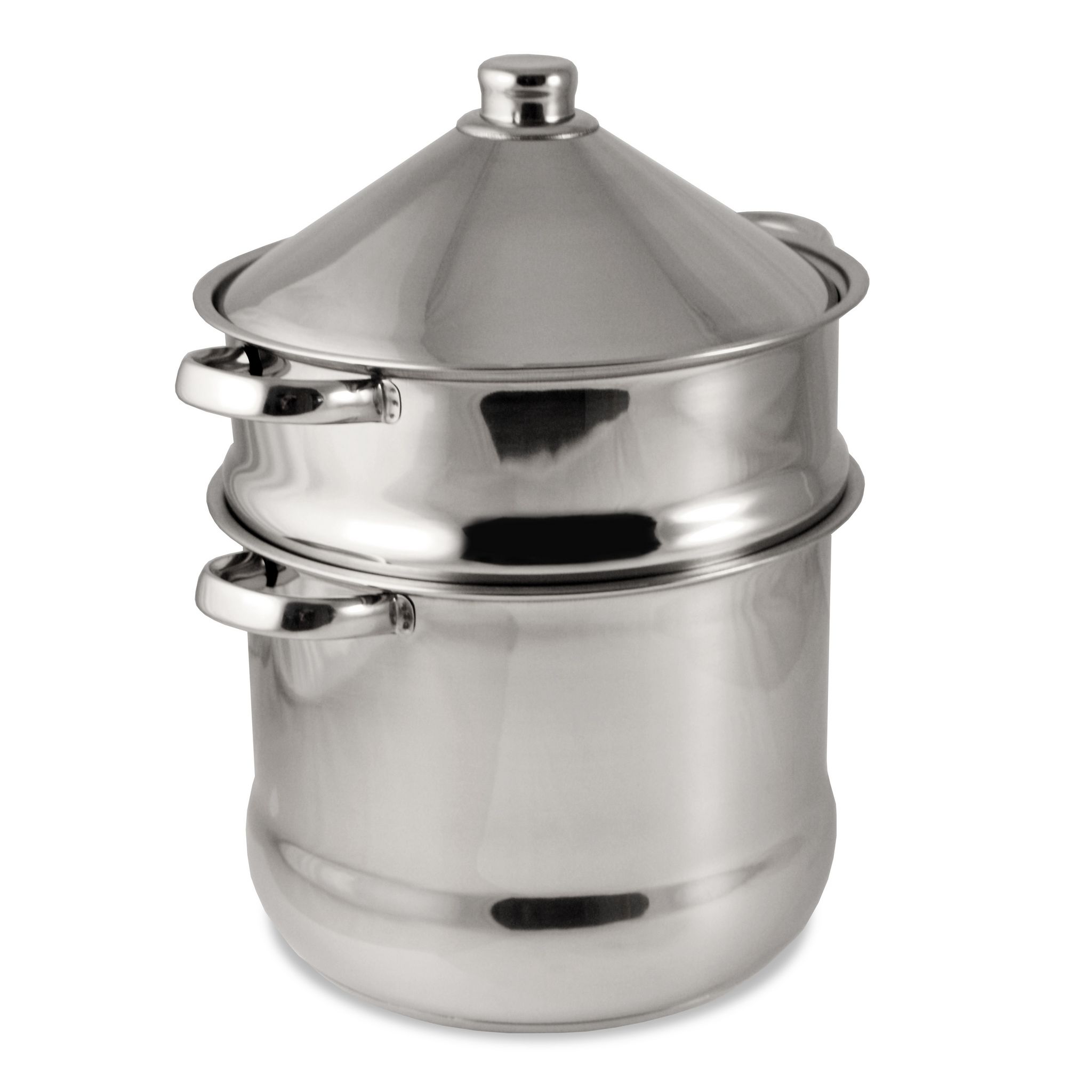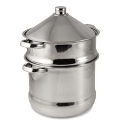 Mijotez de bons petits plats dans ce couscoussier forme tajine en inox, contenance: 9 L. Fond triple épaisseur et capsulé permettant une diffusion optimale de la chaleur. Compatible tous feux dont induction.