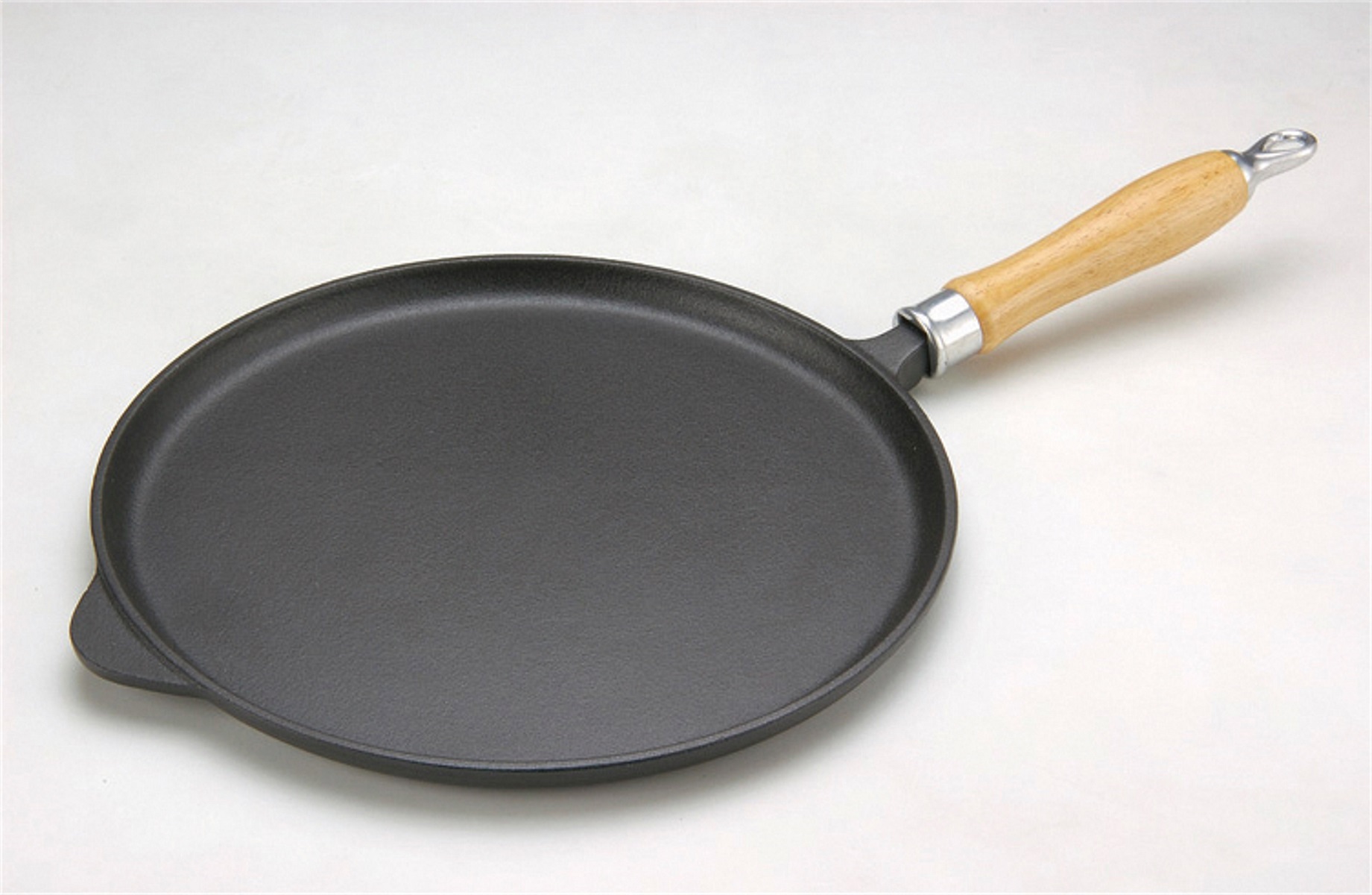 Devenez le professionnel des crêpes avec cette crêpière en fonte noire 27 cm signée BAUMALU. Manche en bois. Tous feux dont induction. Nettoyage facile, compatible lave-vaisselle.