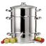 | Particularité | Extracteur à vapeur, idéal pour l'extraction de jus de fruits et de légumes. Couvercle verre avec bord inox et trou vapeur, tous feux dont induction. Triple fond diffuseur inox/alu/inox | |