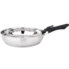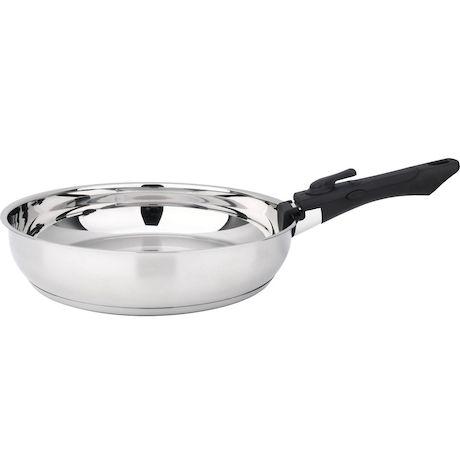 Baumalu 341960 Ce set de 2 poêles de Baumalu 341960 avec son manche amovible est un incontournable pour cuisiner efficacement tout en optimisant l'espace. En acier inoxydable 18/10 avec fond triple thermo-diffuseur garantissant une diffusion homogène de la chaleur pour une cuisson parfaitement maîtr