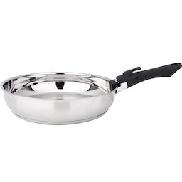 Baumalu 341960 Ce set de 2 poêles de Baumalu 341960 avec son manche amovible est un incontournable pour cuisiner efficacement tout en optimisant l'espace. En acier inoxydable 18/10 avec fond triple thermo-diffuseur garantissant une diffusion homogène de la chaleur pour une cuisson parfaitement maîtrisée. Intérieur satiné et extérieur poli miroir pour une finition élégante. La poignée amovible en bakélite se clipse facilement sur le bord de chaque poêle, offrant une manipulation pratique et sécurisée. Pratique : compatible four (sauf la poignée). Grâce à leur format empilable, elles permettent un rangement compact, idéal pour les petites cuisines. Nettoyage facile : passe au lave-vaisselle. Tous feux dont induction.