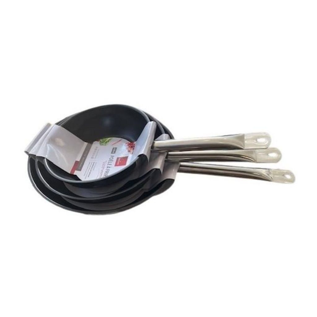 Lot de 3 poeles - BAUMALU - Gastronomie - 20 / 24 / 28 cm - Acier inoxydable