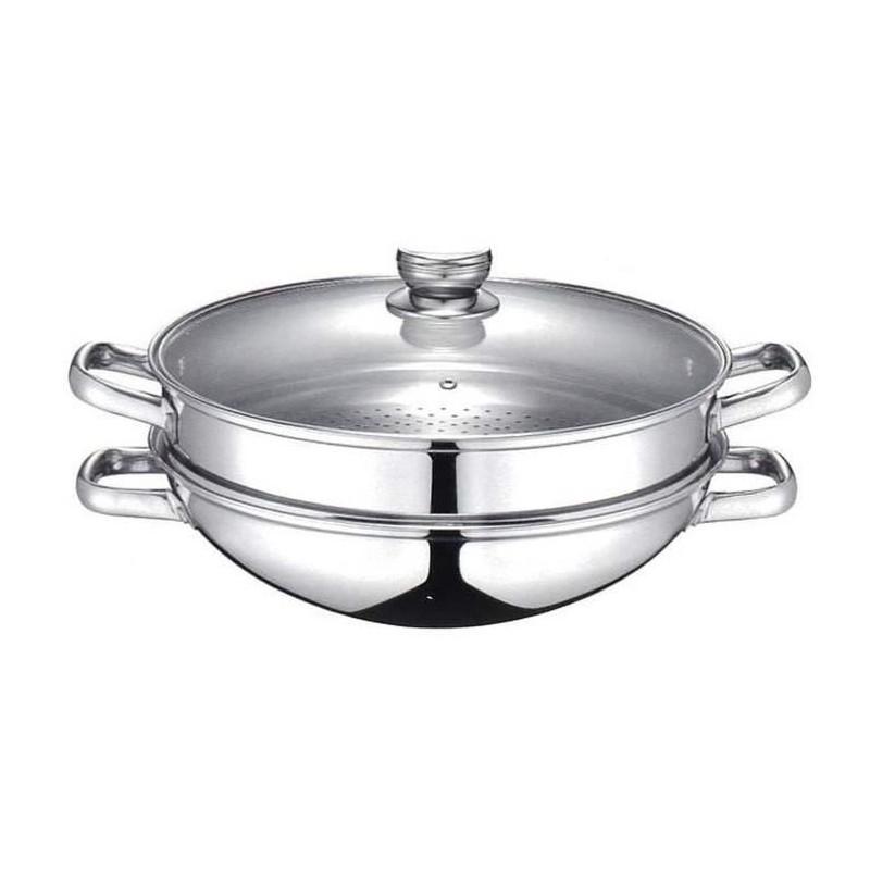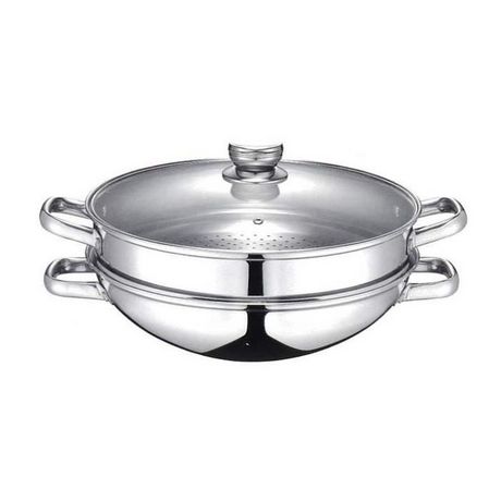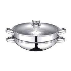 Le Wok 2-en-1 BAUMALU se distingue par son design soigné et ses fonctionnalités pratiques. Il comprend un légumier et un panier vapeur, permettant de cuire à la vapeur tout en cuisant d'autres aliments dans le wok. Le couvercle en verre avec bord inox et trou vapeur permet de surveiller la cuisson tout en maintenant une bonne pression à l'intérieur. L'extérieur est poli en miroir, tandis que l'intérieur est satiné pour une meilleure répartition de la chaleur.