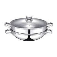 Wok 2-en-1 - BAUMALU - Tous feux dont induction - Couvercle verre - 32 cm