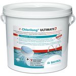 Bayrol ULTIMATE 7 Chlorilong® ULTIMATE7 est un galet de chlore pour piscine bi-phases 7 fonctions pour une désinfection complète et régulière du bassin et du filtre. Couche bleue à dissolution rapide: action choc bassin et filtre. Couche blanche à dissolution lente et régulière : désinfection perman