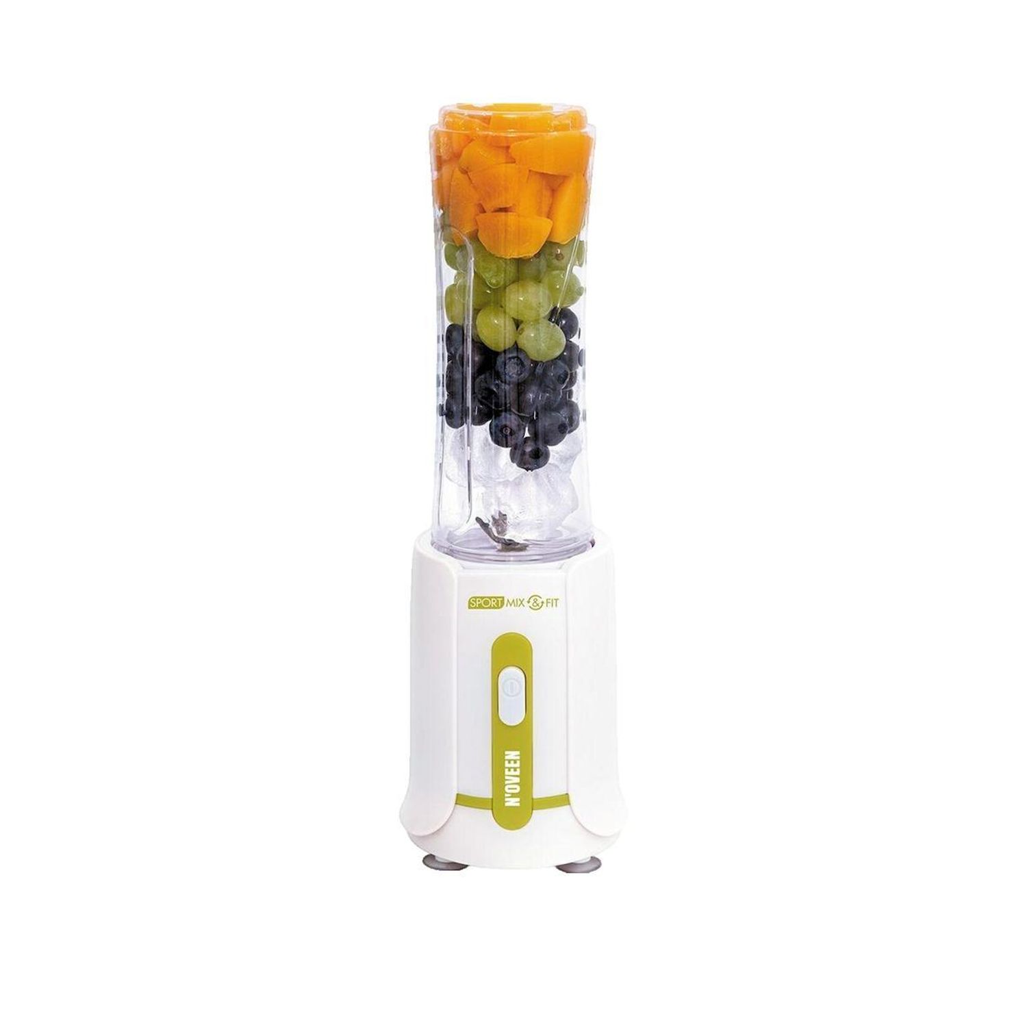 Découvrez le blender Noveen SB210, un mélangeur personnel puissant et moderne, idéal pour préparer des smoothies et shakes délicieux. Il possède une capacité de 0,6 litre et une puissance de 300 watts pour un mélange efficace. Ce blender est équipé de lames en acier inoxydable et d'un bol amovible e