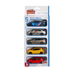 Pack de 5 véhicules StreetFire à l’échelle 1/43ème, assortiment de 5 packs différents.