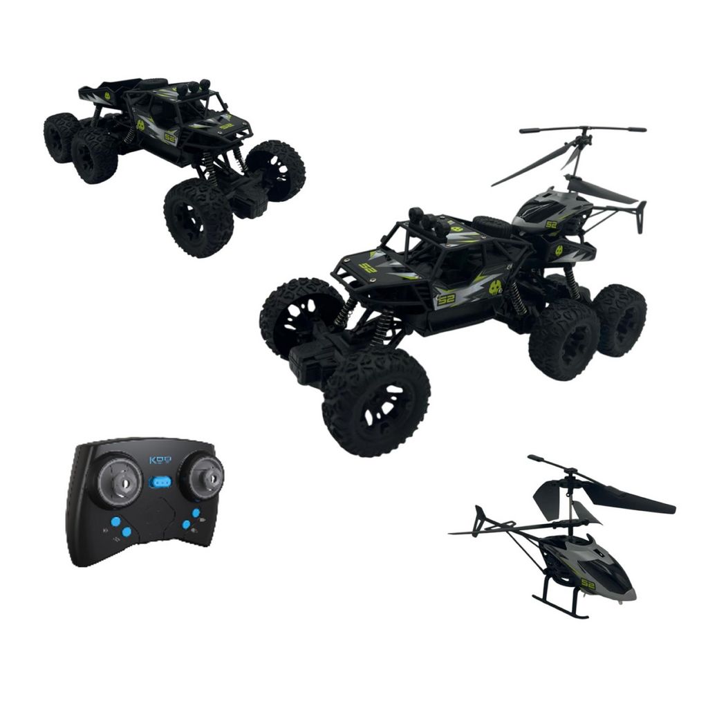 KOKAN 052 est un rêve devenu réalité pour les fans de voitures et d'hélicoptères. Les 2 véhicules sont réunis dans une seule boîte et peuvent être contrôlés avec la même télécommande.2.5 canaux.