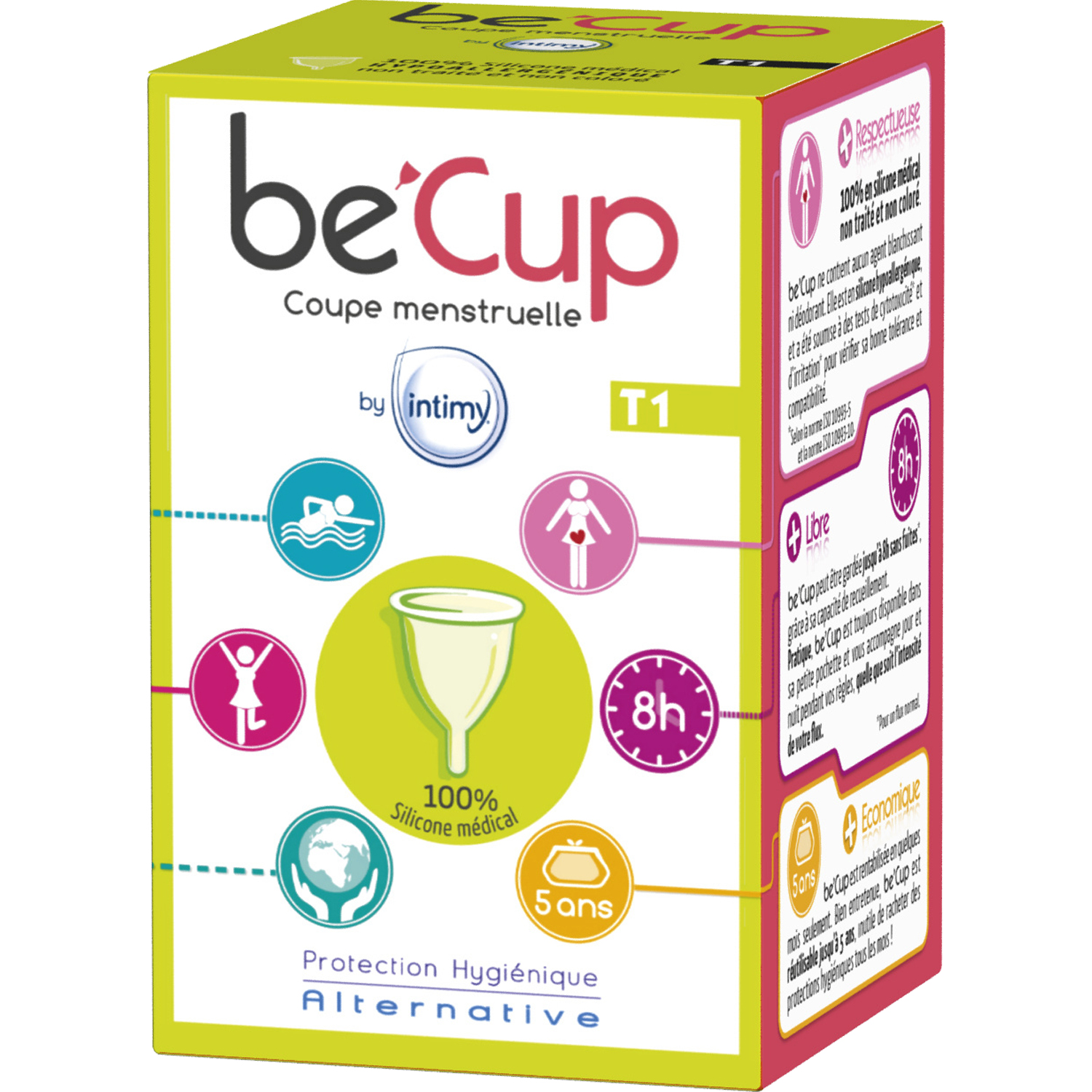 Be’Cup est une protection hygiénique alternative : Elle allie confort d’utilisation et respect de la flore vaginale grâce à une composition 100% en silicone médical hypoallergénique, non traité et non coloré.