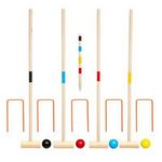Set pour 4 personnes = 4 Maillets, 4 Balles, 5 Arceaux, 2 Piquets en bois & 1 Sac