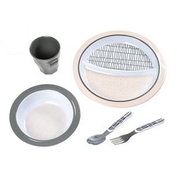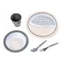 Beaba vous propose ce coffret cadeau repas en mélamine rose. Il est composé d’une assiette avec deux compartiments, d’un bol, d’un verre et de deux couverts. L'assiette et le bol sont dotés d'une base anti-dérapante pour éviter les petits accidents. Facile à entretenir, les élément
