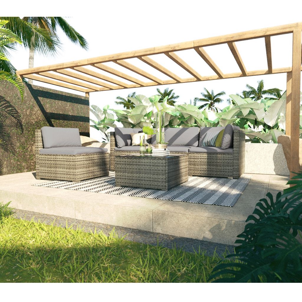 Salon bas de jardin d'angle - Résine tressée - Grise - STELLA