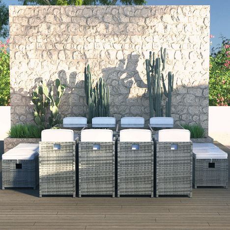 Salon repas de jardin en résine tressée grise 10/12 personnes LAVEZZI