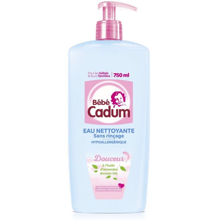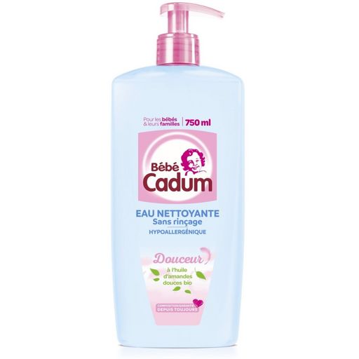 Cadum Bébé Douceur Eau Nettoyante Hypoallergénique à l'Huile d'Amandes Douces Bio pour Bébé 750 ml Bébé Cadum a développé cette eau nettoyante Douceur à l’huile d’amandes douces bio, pour nettoyer en douceur la peau fragile de votre bébé, sans en altérer le film hydrolipidique protecteur. Résultat : permet un nettoyage tout en douceur du visage et du corps du bébé.