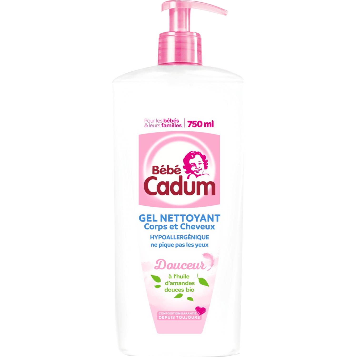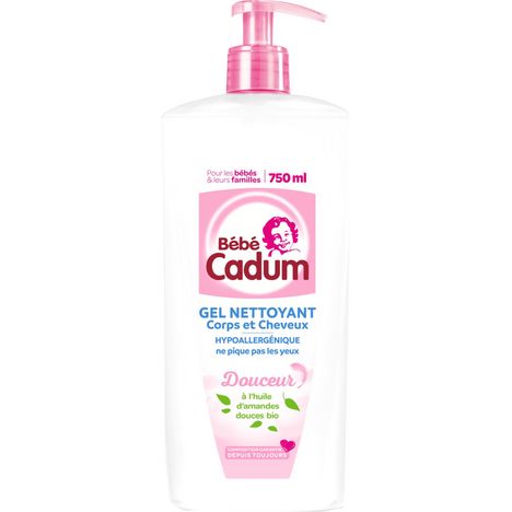 Cadum Bébé Douceur Gel Nettoyant Corps et Cheveux à l'Huile d'Amandes Douces Bio pour Bébé 750 ml