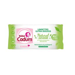 Les lingettes ultra-douces Natural Caresse sont enrichies en huile d'amande douce Bio et s'emportent partout grâce à leur format pratique.