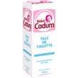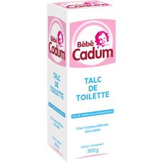 Talc de Toilette pour les Peaux Délicates des Bébés Spécialement adapté à la toilette quotidienne des bébés et des peaux délicates, le talc de toilette Cadum prévient les risques de rougeurs et d'irritation, grâce à son fort pouvoir d'absorption. Sa poudre fine protège et adoucit la peau. Testé pour son inocuité dermatologique.