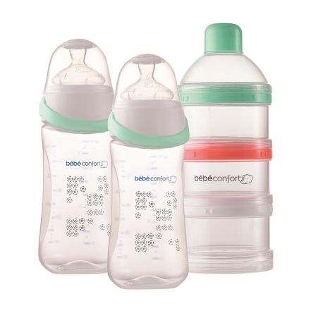 1 clip pour verrouiller! La bague et la tétine se clippent automatiquement. Système garantissant une préparation rapide, sûre et une fermeture efficace sans risques de fuite. 3 boites doseurs de lait Offertes!